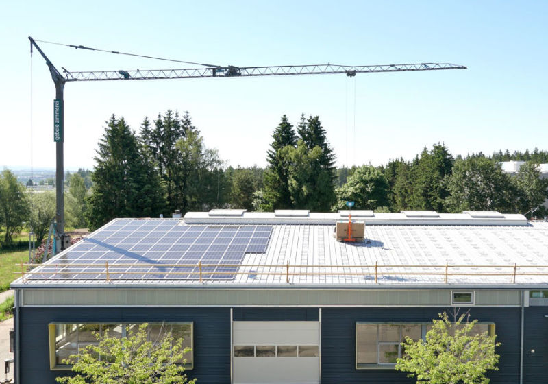 On the recently acquired building next to the AZ Armaturen main plant, a solar system with 270 kW output (for self-consumption) was recently installed and thus complements the area-wide equipment of the main plant with photovoltaics, which already provides a nominal output of 422 kW (of which 266 kW self-consumption). Overall, the output of the photovoltaic systems on the roofs of the AZ buildings in Mönchweiler amounts to 692 kW, of which the AZ main plant consumes up to 536 kW itself.